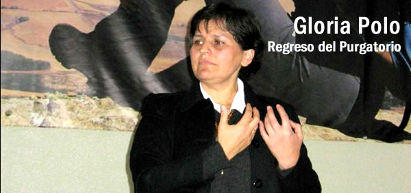 Yo cuando voy arriba veo un lago bellísimo, dos árboles hermosísimos., indescriptibles, es tanta la luz y tanto el amor, es que es un amor vivo, todo expresa paz, que alegría hermanos estar allí, me estoy acercando allá, cuando me estoy acercando oigo la voz de mi esposo, mi esposo grita y me dice: Gloria, por favor no sea cobarde, Gloria regrese, los niños Gloria, los niños.